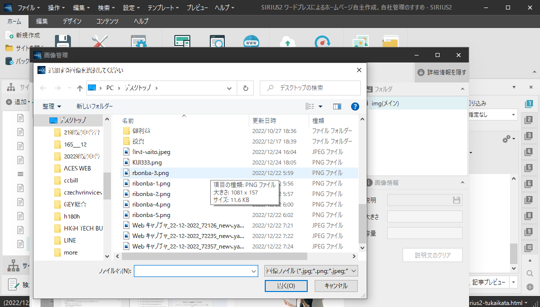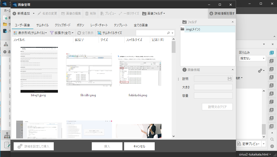 左上に新規追加というところがあるのでデスクトップ等から画像を選んで挿入します。