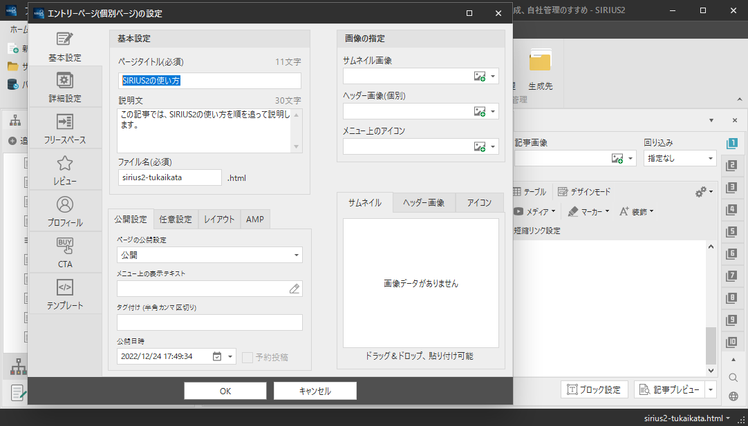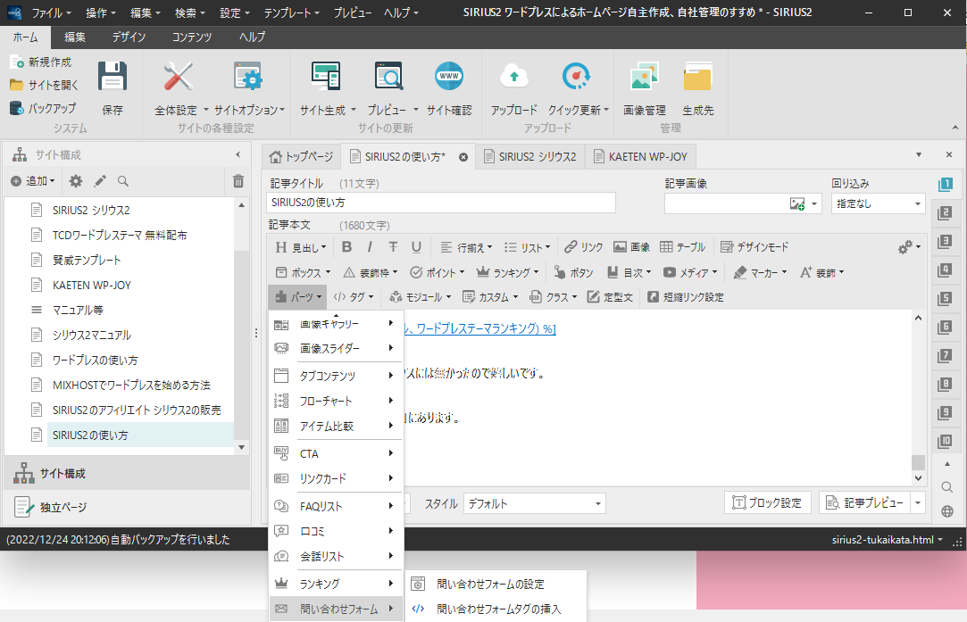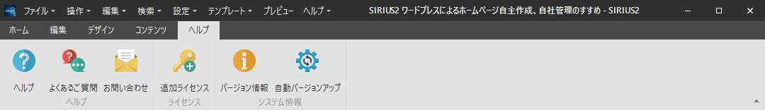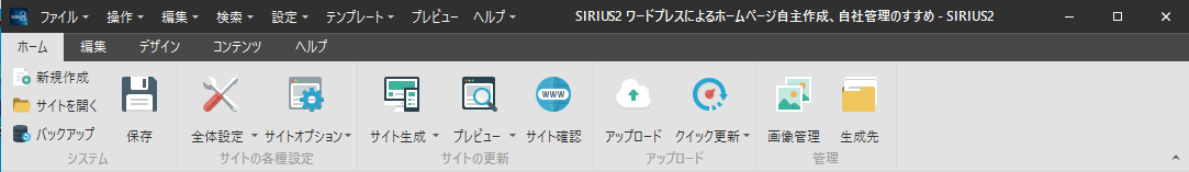 このサイトは、SIRIUS2で作っているので、このサイトをもとにして説明します。
