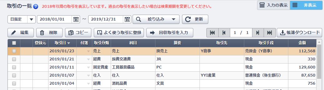 こんな感じで、「簡単取引入力」でも簡単に入力が済んでしまいます。