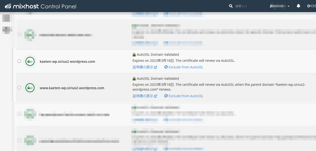 MIXHOSTのコントロールパネルの左下に、WORD PRESSというのが見えると思います。