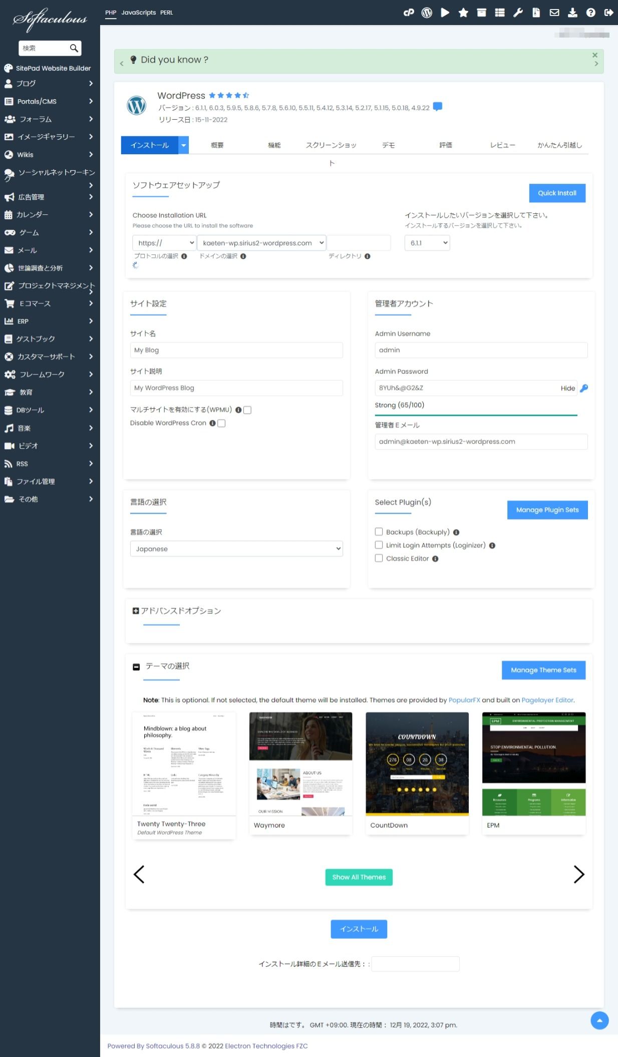 カエテンワードプレスジョイのテーマでサブドメインを作って実際にワードプレスのブログを作ってみます。